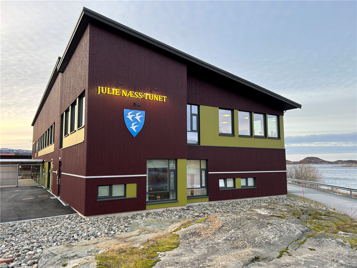 Når du kommer langs Kirkeveien, ser bygget slik ut, til høyre for veien.